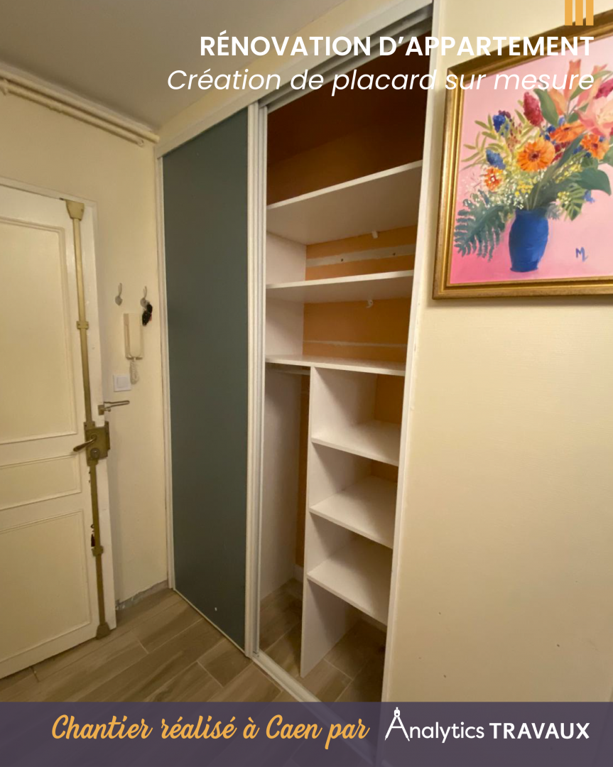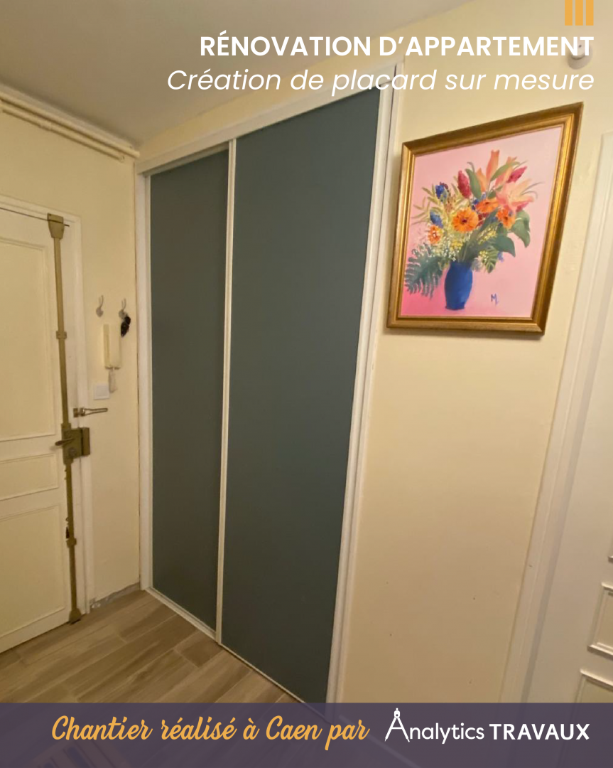 La création d’un placard sur mesure dans l’entrée exploite intelligemment l’espace disponible et apporte une solution pratique au quotidien.