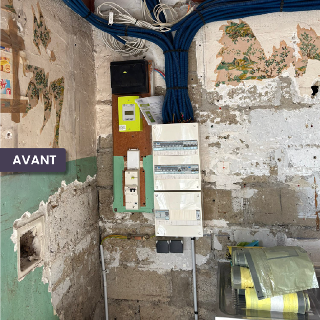 À l’origine, ce rez-de-chaussée était utilisé comme un espace non habitable, proche d’un garage ou d’un sous-sol. Les murs et les sols étaient restés bruts, sans isolation, et les réseaux étaient inexistants ou vétustes. L’ensemble manquait de lumière et de confort, ce qui en faisait un espace peu exploité malgré un réel potentiel.